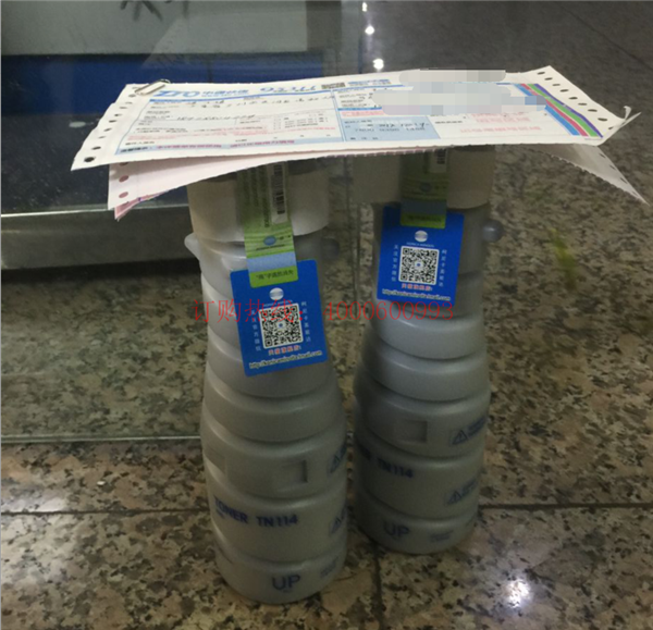 12月19 甘肅慶陽西峰的王先生購買了2支柯尼卡美能達復印機原裝碳粉TN114。小編在銷售部同事那里知道,王先生是在一家塑料生產企業工作的,他們公司主要生產各種規格的塑料藥瓶,農藥瓶,洗潔凈瓶,膠水瓶,灑壺,防凍液桶,2--4升機油桶,30升,50升涂料桶,1升--75升各種規格的民用及工業用包裝聚乙烯吹塑桶等,最近有批貨要出,打印出貨單、合同之類的文件比較多,所以,需要備兩只碳粉回去的。柯尼卡美能達復印機原裝碳粉TN114我們家有現貨的呢,下面我們來看一下打包現場: